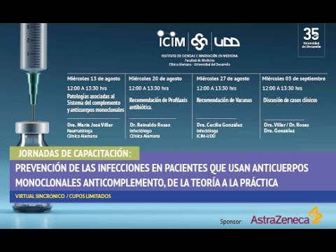 - 1:01:43Prevención de las infecciones en pacientes que usan anticuerpos mono- Sesión lVFacultad de Medicina Clínica Alemana Universidad del Desarrollo