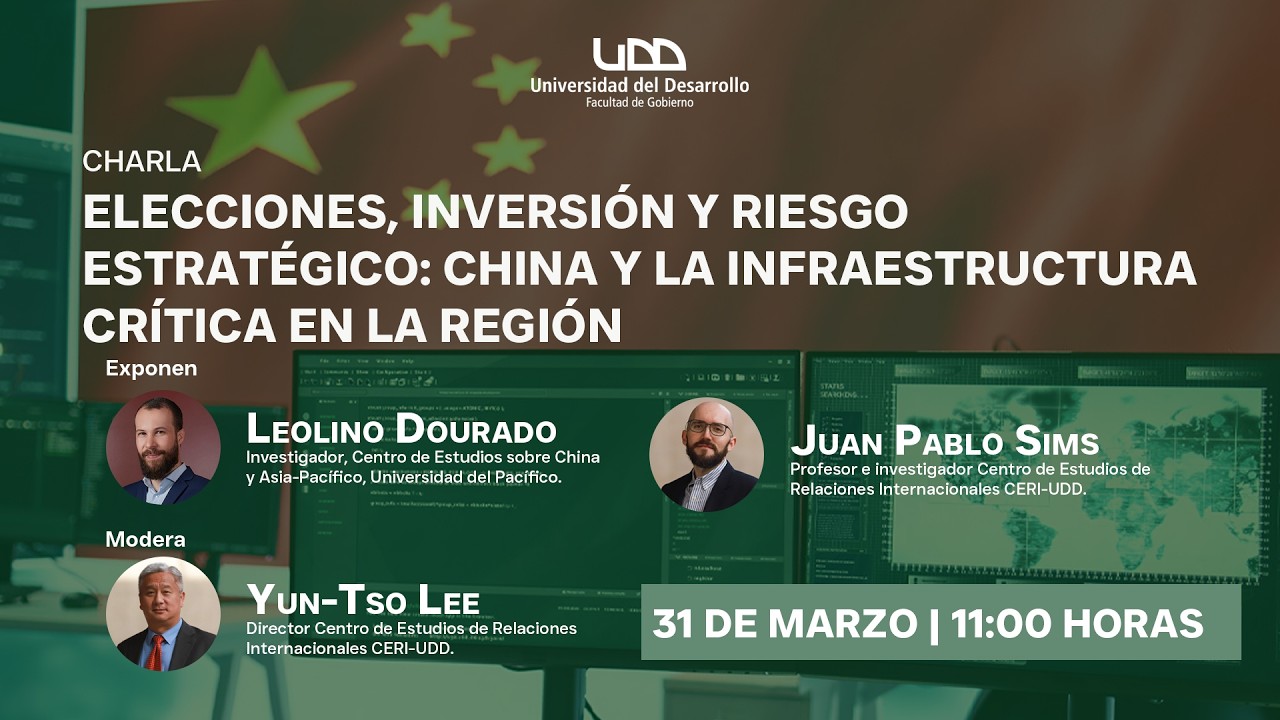 1:05:38Charla | Elecciones, inversión y riesgo estratégico: China y la infraestructura crítica en la regiónFacultad de Gobierno Universidad del Desarrollo